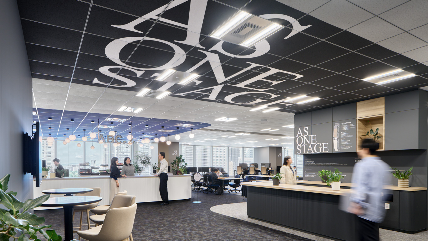 新本社オフィスは「As One Stage」というコンセプトのもと、社員が最大限のパフォーマンスを発揮する共創の「舞台」として工夫が施されている。来客・共創エリアは開放感にあふれ、用途に応じて多様に変化するイベントステージを中心に配置し、活発な交流を促進する。執務エリアは目的に応じて働く場所を選択でき、個人の集中とチームの協働を柔軟に切り替えられる。加えて、サウンドスケープデザインにより、快適で集中しやすい音環境を整備し、さらなる働きやすさを実現している。今後も継続的な改善を重ねながら、「進化を続けるオフィス」を目指していく。