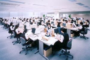| オフィスの概要 「収益1%を社会還元へ」の呼びかけに応えて設立された重度障害者雇用施設。事故に直結するので様々な安全対策が施され、 通院、通勤の便宜を図るため、就労時間選択性を採用している。障害の違い、程度に応じて、機械の防音対策、 電動車椅子採用、家具レイアウトの工夫など配慮が行き届いている。全員が礼儀正しく、可能な能力の発揮をめざす 魅力的なオフィスである。 | |