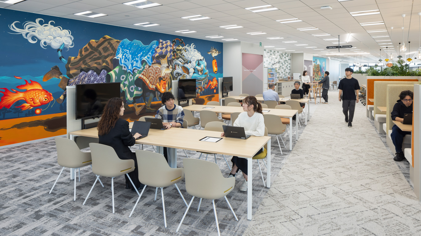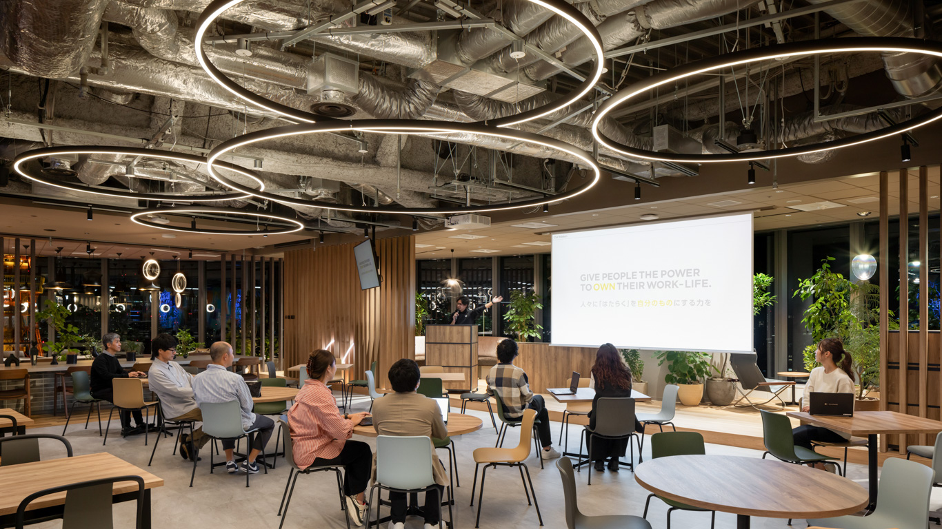 パーソルキャリアは、人材紹介や転職支援などの事業を展開し、ミッションである「人々に『はたらく』を自分のものにする力を」の実現を目指しています。オフィスは「ミッション実現のためのはたらき方をリードし、社会を変革する発信地」と位置づけ、「GIVE POWER」というコンセプトの元、設計されました。「"外"と接する」「コミュニティを育む」など4つの働き方に基づいた空間を構成。チェンジ・マネジメントとアクティビティ・ベースド・ワーキングを導入し、業務に応じて自由に場所を選べる環境を整えることで、働き方改革と企業文化の醸成を推進しています。