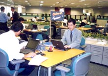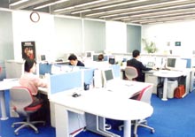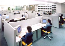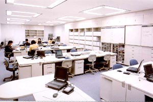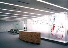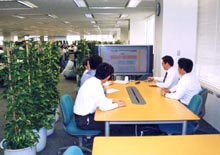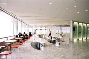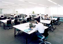 | オフィスの概要 全社員1600名が、個人ホームページを持ち、かつ様々なデータベースにリンク可能なイントラネット構築が図られている。 俊敏な知的創造活動が行なえるシステムに加えて移動可能な観葉植物を間仕切りとして採用。 ワーカー自らオフィスをつくっていくフレクッス・レイアウト及びノンテリトリアル方式の開放感あるオフィスである。 | |