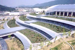 | オフィスの概要 研究開発の拠点作りと企業や人材を育成するための施設として、ハイテクなイメージと自然環境との融和が見事になされており、 オフィス・ワーカーにとっで快適で機能的な素晴らしいオフィス環境となっている。 また、建築物も屋根に客土を載せ自然エネルギーを利用すると共に、自然との一体化が配慮されている。 | |