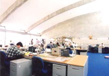 | オフィスの概要 「収益1%を社会還元へ」の呼びかけに応えて設立された重度障害者雇用施設。事故に直結するので様々な安全対策が施され、 通院、通勤の便宜を図るため、就労時間選択性を採用している。障害の違い、程度に応じて、機械の防音対策、 電動車椅子採用、家具レイアウトの工夫など配慮が行き届いている。全員が礼儀正しく、可能な能力の発揮をめざす 魅力的なオフィスである。 | |